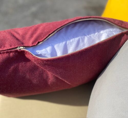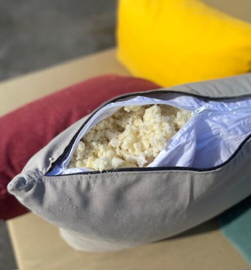 Première housse en tissu coton avec fermeture à glissière pour faciliter le garnissage.