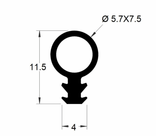 Joint d’étanchéité noir tubulaire pour menuiserie. Caoutchouc TPE noir 72 shore A.