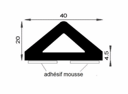 Profil antichoc type défense delta 40 x 20 mm noir, vendu avec adhésif, dureté 68 shore A.