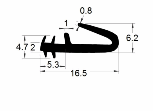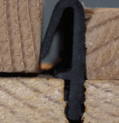 Joint d’étanchéité de menuiserie avec queue de sapin. Dimensions extérieures 16,5 mm par 4,8 mm. Se fixe (par clippage) dans une gorge en bois. Possibilité de le souder à chaud en cadre ou bout à bout.
