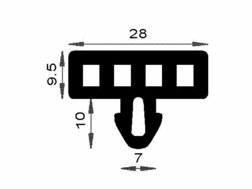 Joint creux support de verre. Caoutchouc TPE dureté 67 shore A noir.