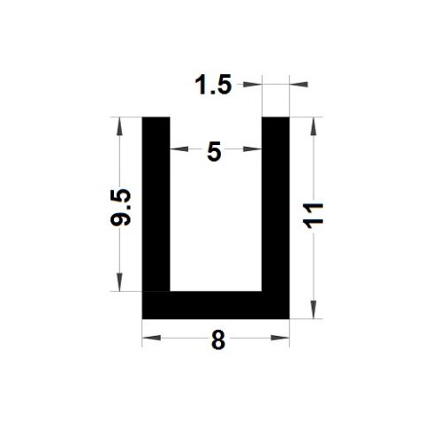 Joint en U naturellement blanc de dimension 8 x 11 mm, pour tôle de 5 mm, épaisseur 1.5 mm.