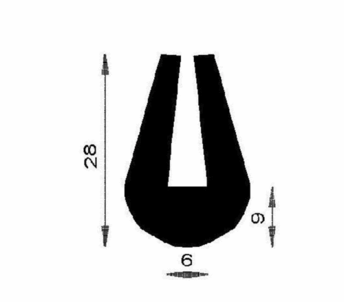 Joint U de protection de bord de tôle, épaisseur 6 mm, caoutchouc TPE noir 67 shore.
