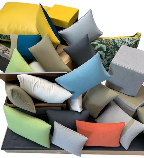 Coussins réalisés dans notre atelier de Cournon d’Auvergne.