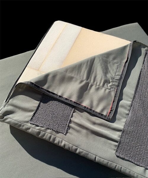 Composés d’une plaque de mousse reconstituée d’une épaisseur de 4 cm sur laquelle est recollée une mousse à mémoire de forme.