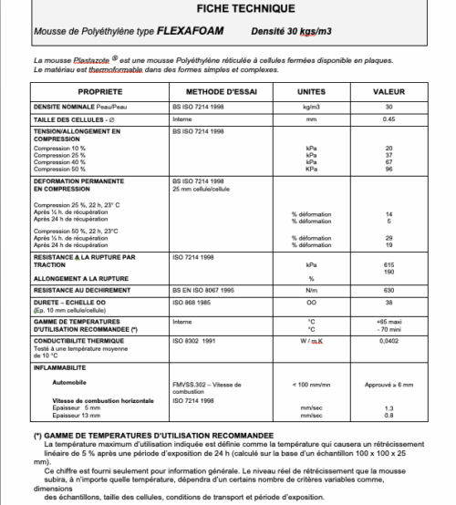 La mousse Flexafoam est une mousse Polyéthylène réticulée à cellules fermées.